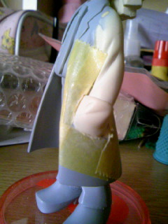 あまりのパテで作った左腕も、一応肌色に塗ってみたけど