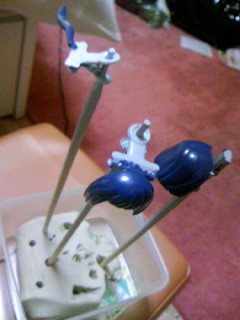 髪の毛を塗装、乾燥中…